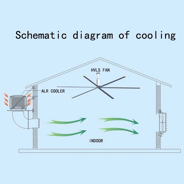 The SB Air Cooler, paired with a High Volume Low Speed (HVLS) fan, delivers a powerful and energy‑efficient solution for indoor comfort. The cooler introduces a steady stream of chilled air, while the HVLS fan distributes it evenly across the space. This combination reduces hotspots, enhances ventilation, and ensures consistent cooling in large indoor environments. With SB’s trusted design and performance, businesses and homes alike benefit from reliable temperature control and improved air circulation.
